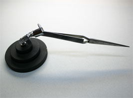 Third Hands are a must have tool if you are planning on doing any soldering, each are heavy non-tipping bases with ball joint attachments which can position work at any angle. The most common tweezer used is the cross-locking type, they close when released by hand. Third Hands are also handy for beading and gluing.